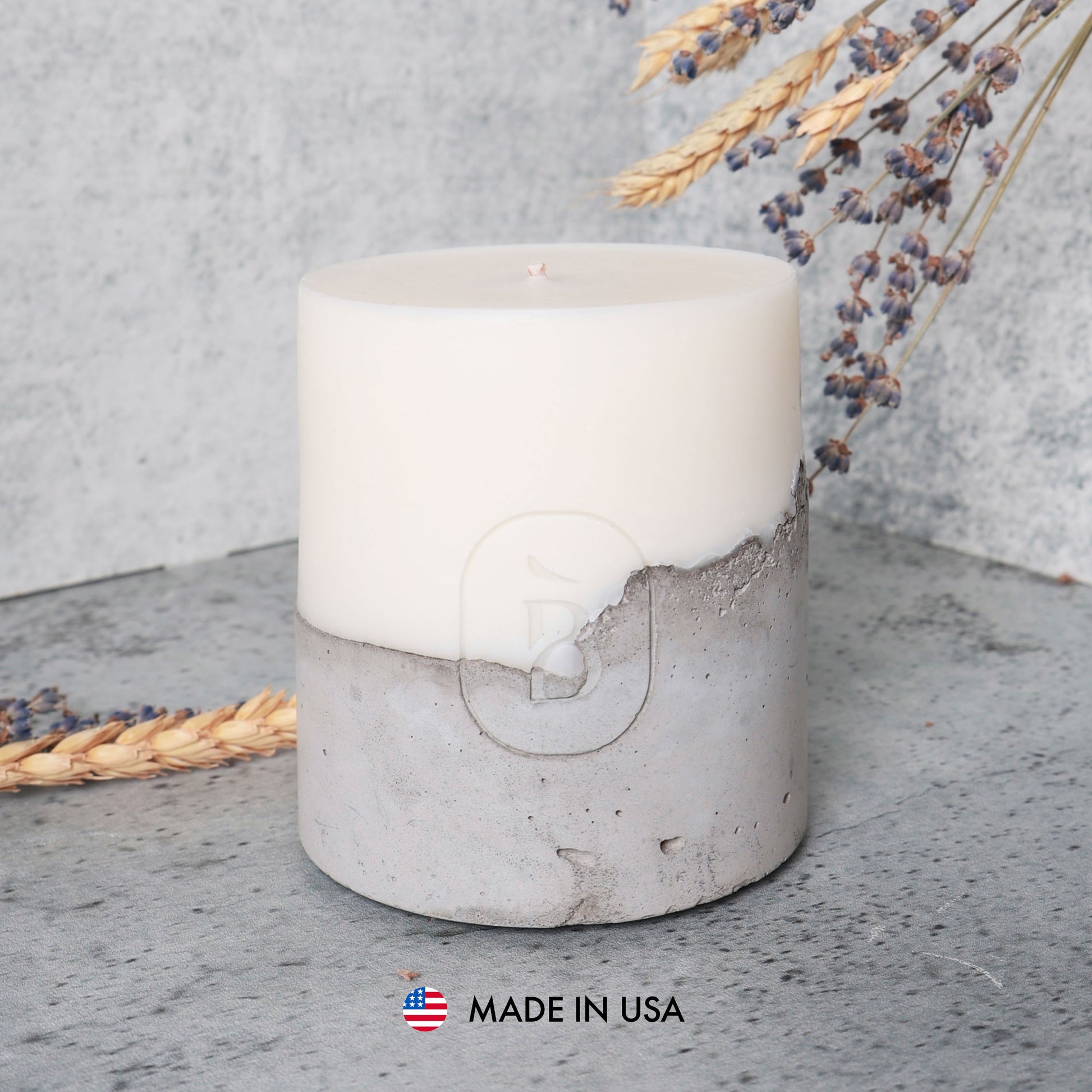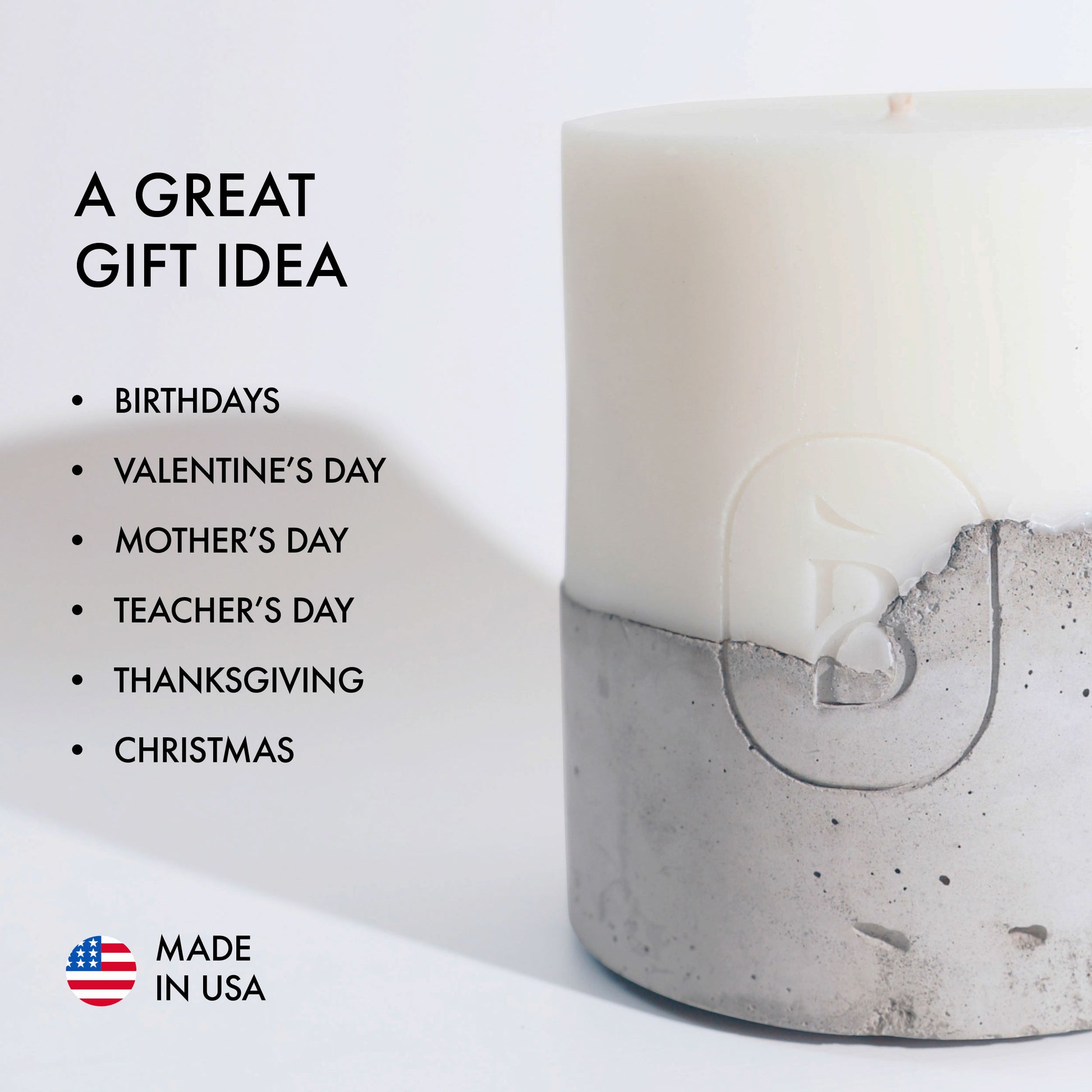 Diseño de lujo : Con una elegante base de hormigón, estas velas combinan estilo y funcionalidad, convirtiéndolas en un complemento sofisticado para cualquier decoración. Hechas a mano con esmero en EE. UU., ofrecen belleza y practicidad.